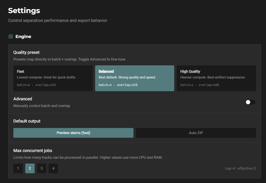 『Go-Splitter』というFreeで利用できるStem化(音源のパート分離化)ツールです。しかも何が良いって、ローカルPC上で完結するところ。ネット上のAPIを叩いて動くタイプのツールではないので、どんな曲を使っても安心(一応)。