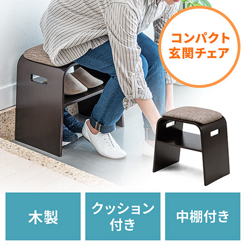 150-SNCH032 玄関椅子 玄関チェア 玄関ベンチ スツール 腰かけ 靴 スリッパ収納 クッション付き 木製 曲木 ブラウン コンパクト | 通販ならサンワダイレクト
